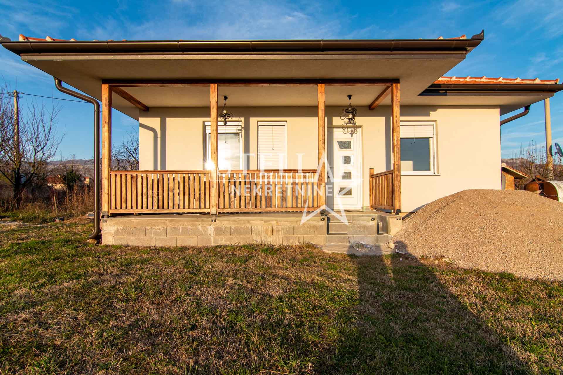 Opis: A furnished two-bedroom house is for rent in Spuž, near the train station. The house is prefabricated, has an area of 62m2, was built in 2023 and is located on a fenced plot of 4,500m2. Next to the house is a built-in barbecue, with two grills. In one bedroom there are two beds, one double bed and another pull-out bed. In the second room there is a pull-out sofa. The living room is very bright. It has furniture that, although older, is like new. There is also an air conditioner, as well as a furnace that heats the entire living room, dining room and kitchen. The kitchen has an electric stove, fridge with freezer.