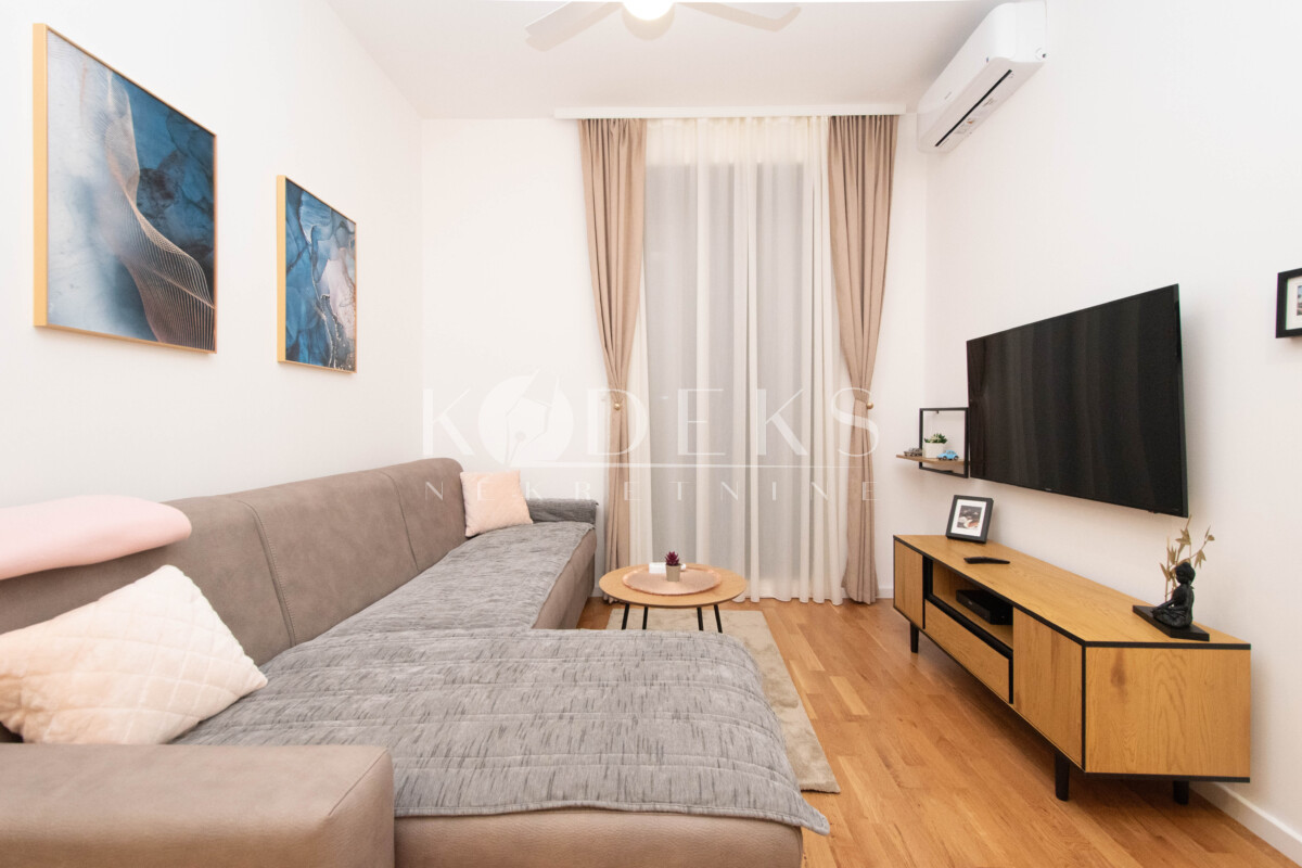 Opis: Izdaje se lijepo opremljen jednosoban stan smješten u prizemlju zgrade u kvartu Posh residence u Tološima.