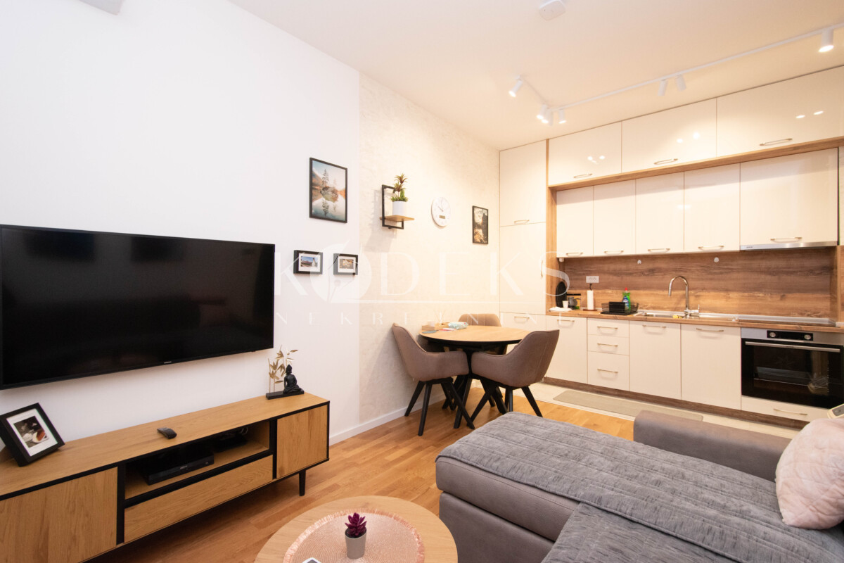 Struktura: Dnevna soba koja je povezana sa trpezarijom i kuhinjom i ima izlaz na terasu, spavaća soba sa izlazom na terasu, ulazni hodnik i kupatilo.