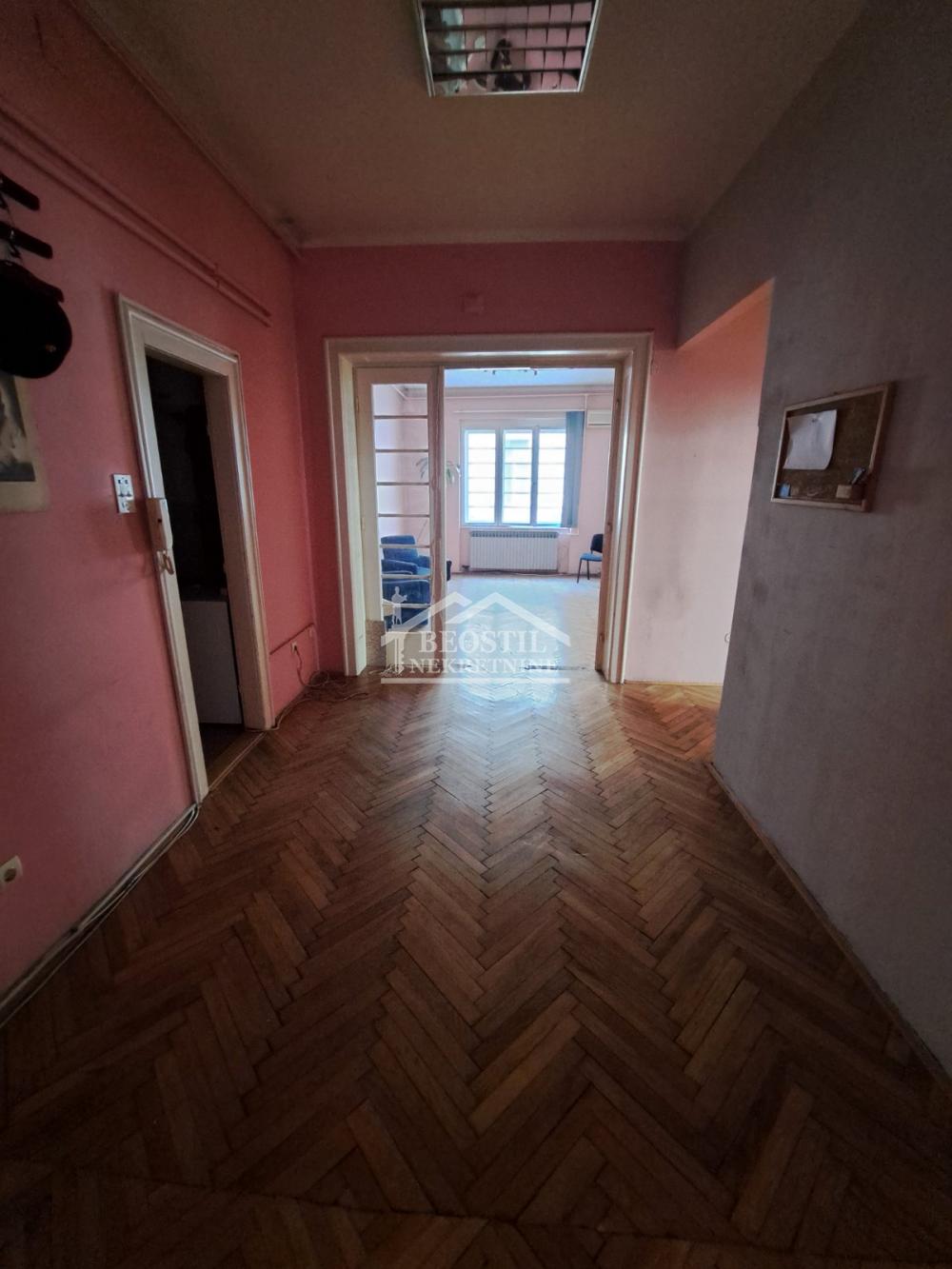 Salonski stan, veoma atraktivan za kancelarijske poslove, ulazna prostorija povezuje dva mokra čvora sa dve manje i dve veće kancelarije, visoki plafoni,dvostran, moguće estetski prilagoditi nameni delatnosti, na duže