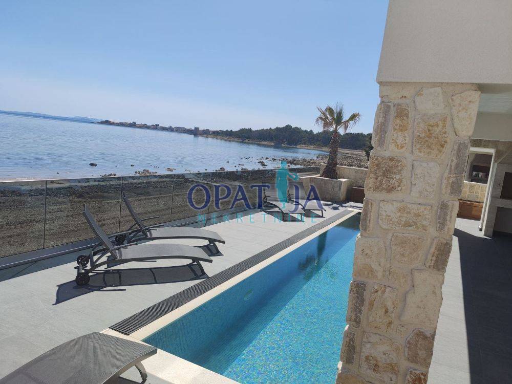 Ova ekskluzivna vila u prvom redu do mora na otoku Viru spaja modernu arhitekturu s elegantnim kamenim detaljima te nudi iznimno kvalitetan životni prostor. Izgrađena je 2022. godine i ističe se čistim linijama, vrhunskim materijalima te prekrasnim pogledom na more i Velebit.