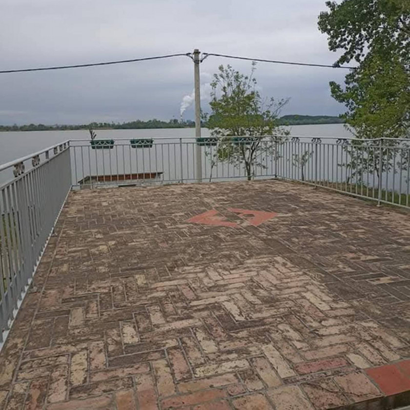 Kuća se nalazi na obali dunava, ima veliku terasu koja gleda na obalu, ispod terase je garaža za auto.