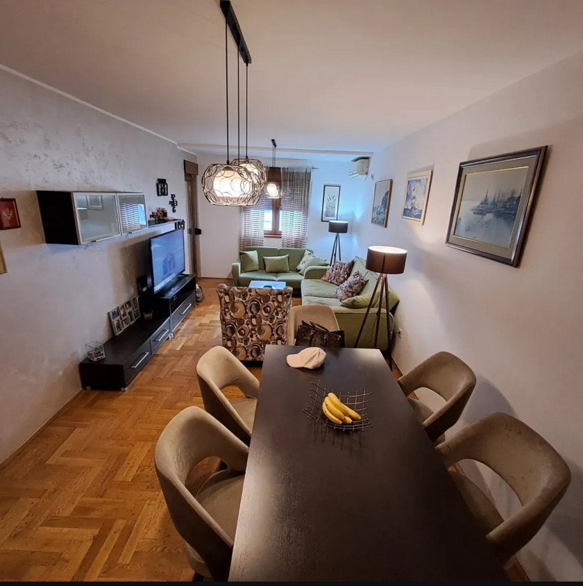 Opis: Prodaje se dvosoban stan 70m2 u zgradi Zetagradnje na Starom Aerodromu. Stan je kompletno opremljen i kao takav se prodaje, a nalazi se na petom spratu vrhunske novogradnje koja ima šest spratova i dva lifta. Struktura stana: ulazni hodnik, dnevni boravak, kuhinja i trpezarija, dvije spavaće sobe, kupatilo i terasa. Na terasu se izlazi iz dnevnog boravka. Stan je odmah useljiv, nisu potrebna dodatna ulaganja, a orjentisan je istočno. Oko zgrade nalazi se veliki javni parking, a okruženje je jako sadržajno sa dosta objekata razne namjene. List nepokretnosti je čist i nema tereta i ograničenja.