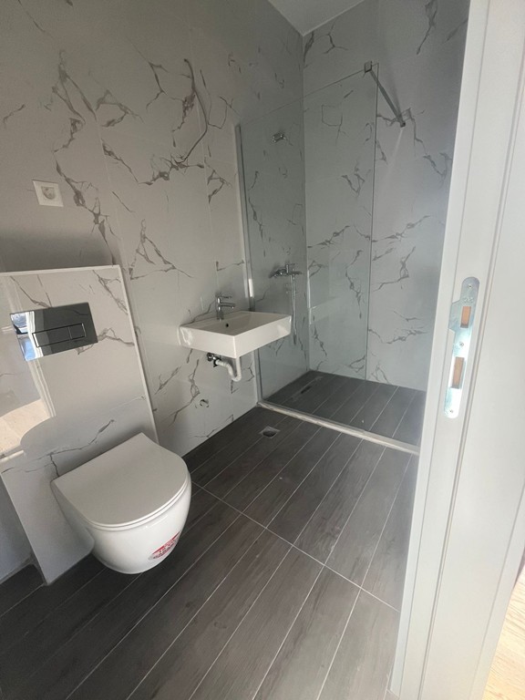 Struktura: dnevna soba, kuhinja, tri spavaće sobe, hodnik, 2 kupatila, toalet i terasa.