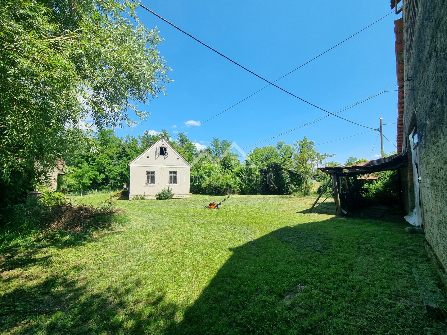 Na zemljištu se nalazi kuća (za adaptaciju) te dodatni veliki pomoćni objekt površine 212 m², koji može služiti kao: