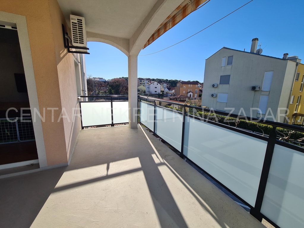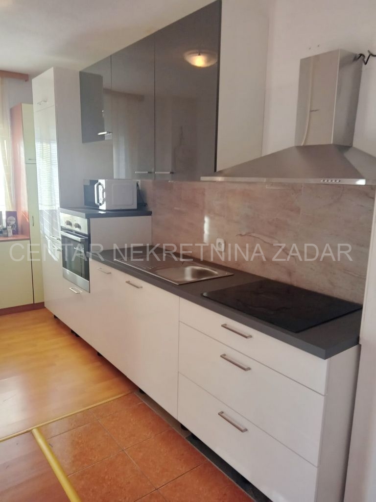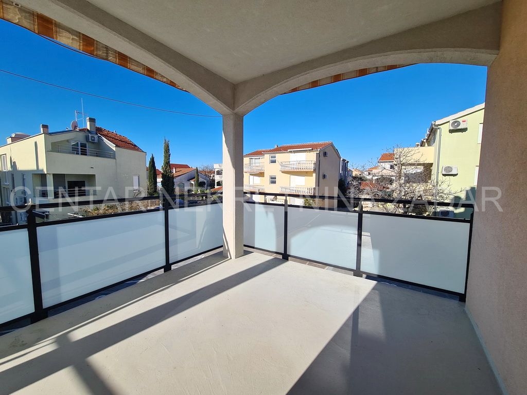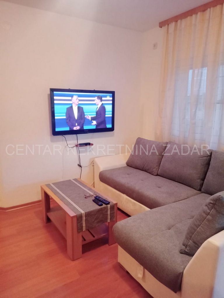 Opis: Prodaje se jednosobni stan u Biogradu na Moru, smješten na prvom katu zgrade sa šest stambenih jedinica. Površina mu je 37,35 m² i sastoji se od predsoblja, kuhinje s blagovaonom i dnevnim boravkom (23,6 m²), jedne spavaće sobe (9,25 m²) i kupaonice. Dnevni boravak ima izlaz na prostranu popločanu terasu (13,6 m²) s dvije strane zaštićene tendom.