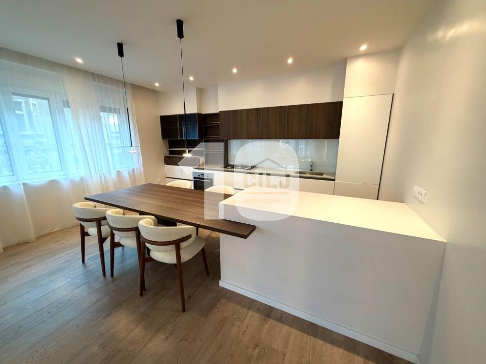 Dizajnerski izgled stana, kuhinja "Calligaris", bela tehnika "Elektrolux", dnevna soba "Mimco", spavaće "Calligaris", kupatilo i oprema - mermer, kvarc. Boje u stanu Lateks vodootporne.