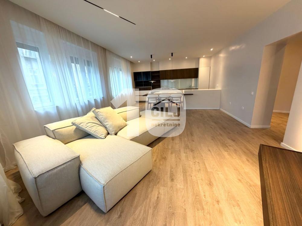 Opis: Luksuzno renoviran stan salonske visine plafona 3m, sa dve terase i garderoberom, ukupne površine 118m2 (uknjižen na 98m2).