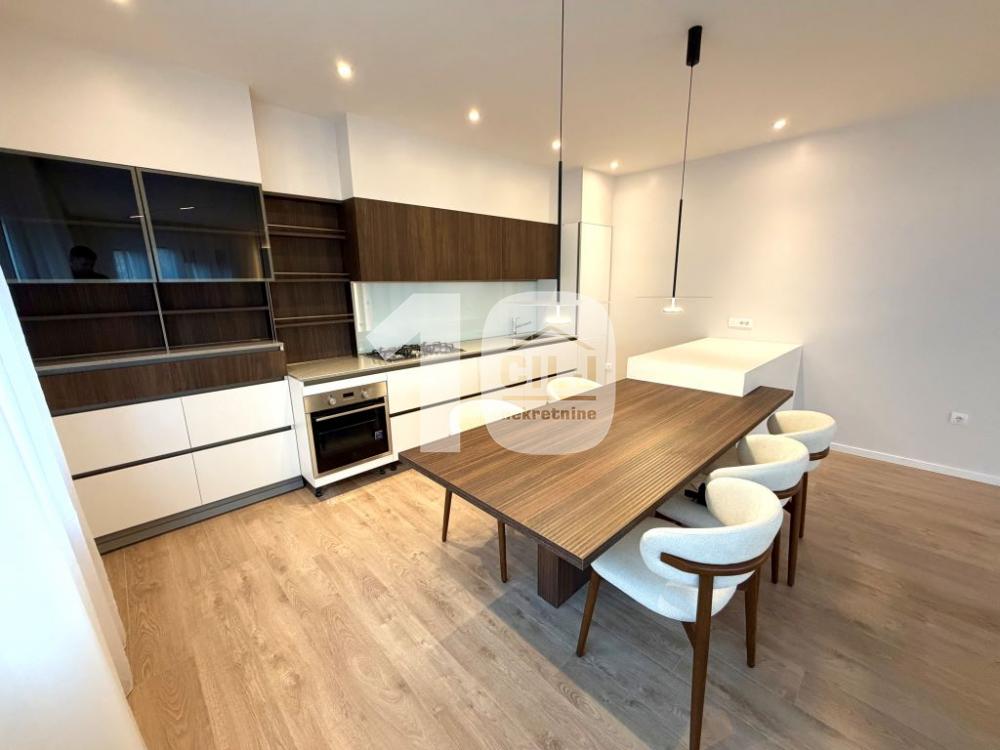 Izuzetno funkcionalan: dnevni boravak - kuhinja - trpezarija open space 40m2. Odvojen spavaći blok , prostrane spavaće sobe.