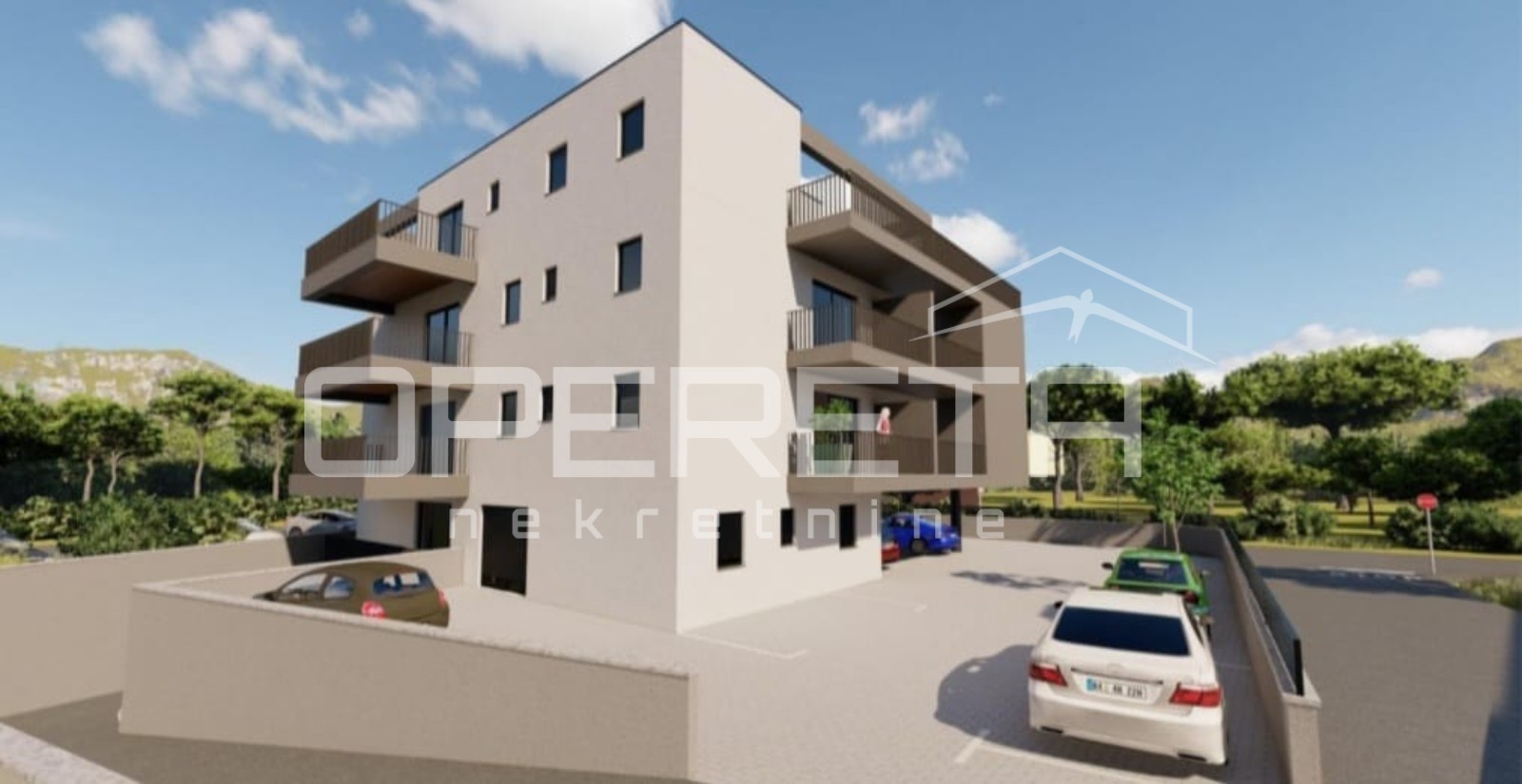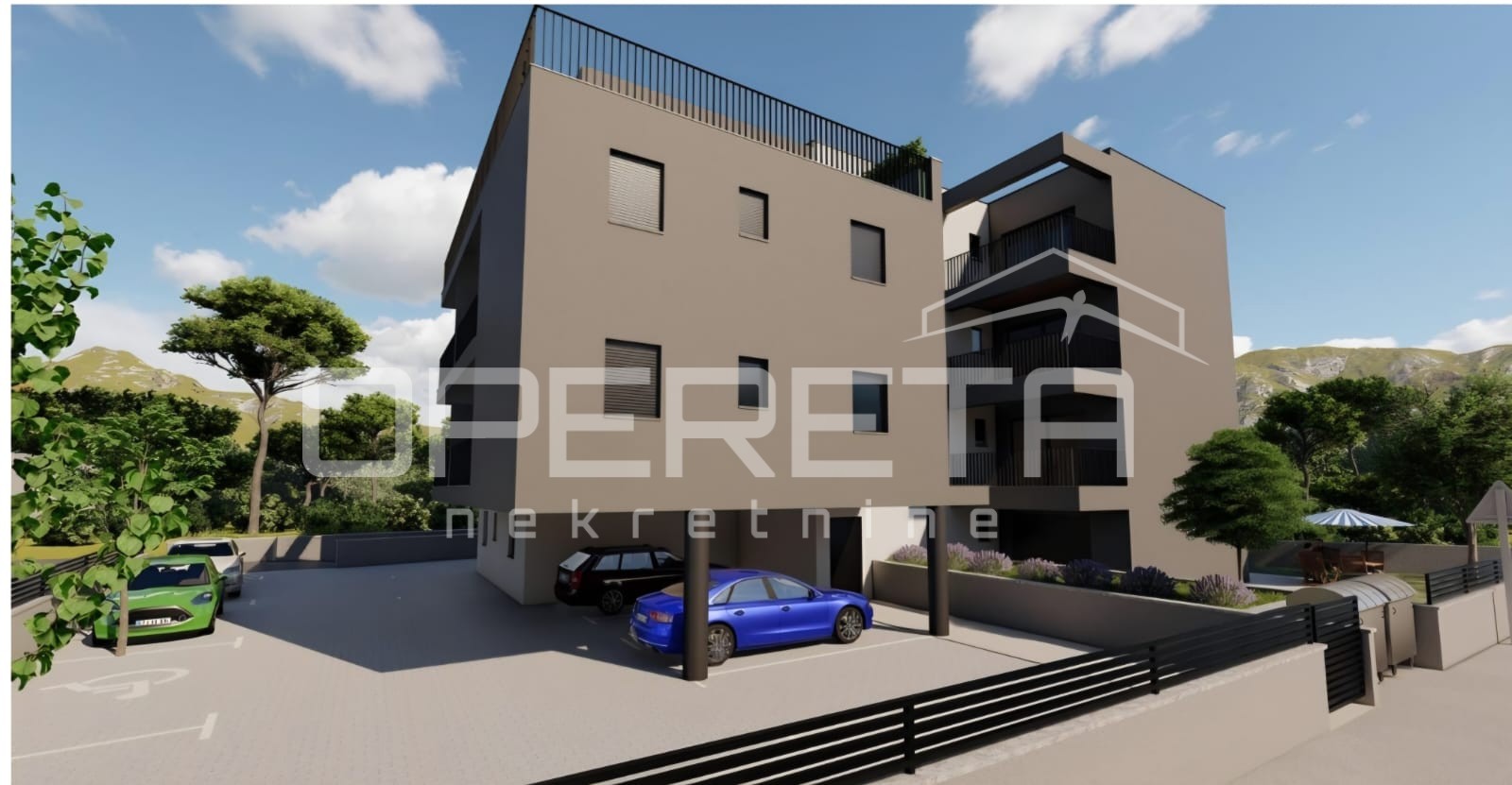 Opis: Stan, Dugopolje, novogradnja, 2S, balkonU moderno projektiranoj zgradi u Dugopolju nalazi se funkcionalan dvosoban stan, smješten na drugom katu. Tlocrt pruža jasan raspored dnevnih i privatnih prostora, s otvorenim boravkom i kuhinjom te izlazom na balkon. Stan je orijentiran prema zapadu i sjeveru, što osigurava stabilnu količinu dnevnog svjetla bez pregrijavanja.Stan se sastoji od kuhinje, blagovaonice i dnevnog boravka površine 26,06 m2, dvije odvojene spavaće sobe (10,39 m2 i 10,72 m2), kupaonice od 5,63 m2 te predsoblja. Balkon od 15,90 m2 dodatni je kvalitetan vanjski prostor.Zgrada ima lift, podrumske ostave i parkirna mjesta te je komunalno u potpunosti opremljena glede pristupa, odvodnje i parkiranja. U blizini se nalaze trgovine, sportski centar, osnovna škola, vrtić i brzi pristup na autocestu, što ovu nekretninu čini praktičnom opcijom za život ili ulaganje.Uz dodatnu nadoplatu, postoji mogućnost kupnje vanjskog i/ili garažnog parkirnog mjesta.