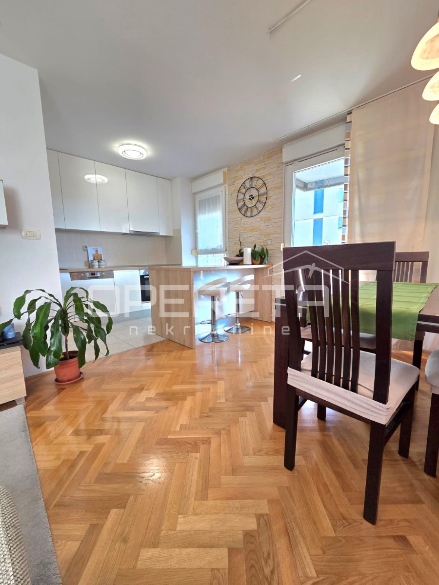 Opis: Stan 65,57 m2, sa garžnim parkirnim mjestom i lođom, ŽnjanNa Žnjanu se prodaje dvosoban potpuno namješten stan smješten u održavanoj zgradi s liftom, pored svih sadržaja potrebnih za život. Stan ima funkcionalan raspored s dnevnim boravkom i kuhinjom u jednoj cjelini, dvije spavaće sobe, kupaonicu, zaseban toalet i lođu koja daje dodatni osjećaj prostora. Prodaje se namješten, što omogućuje brzo i jednostavno useljenje.U cijeni je uključeno i garažno parking mjesto unutar zgrade, što je velika prednost u ovom dijelu Splita. Zgrada se nalazi u mirnoj ulici, a neposredno okruženje nudi trgovine, kafiće i pristup uređenoj obalnoj zoni Žnjana.Stan je pogodan za život tijekom cijele godine, ali i kao sigurna investicija zbog stabilne potražnje na ovoj lokaciji.