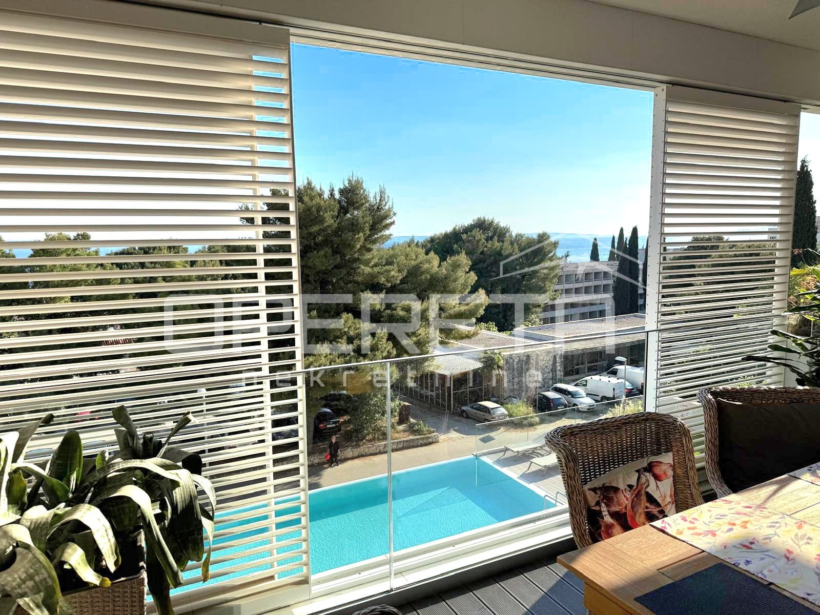 Opis: SPLIT, BEL ETAGE, NAJAM DUGOROČNOIznajmljuje se luksuzan trosoban stan u prestižnoj splitskoj zgradi Bel Etage.Idealan za dugoročni najam. Stan se nalazi u modernoj zgradi koja pruža vrhunsku udobnost i sadržaje, a iz njega se pruža predivan, otvoren pogled na more. Sastoji se od prostranog dnevnog boravka povezanog s potpuno opremljenom kuhinjom, tri komforne spavaće sobe i dviju elegantnih kupaonica, te gostinjskog WC-a, dok velika terasa omogućuje uživanje u miru i panorami. Zgrada raspolaže teretanom i bazenom namijenjenima isključivo stanarima, osiguravajući dodatnu razinu luksuza i privatnosti. Uz stan dolaze dva garažna mjesta te pripadajuća ostava, a nekretnina je dostupna od 1.1.2026.godine. Idealna za obitelji, parove ili poslovne korisnike koji traže udoban, moderan i siguran dom u jednoj od najpoželjnijih splitskih lokacija.