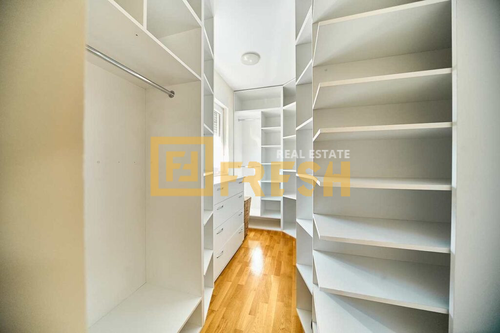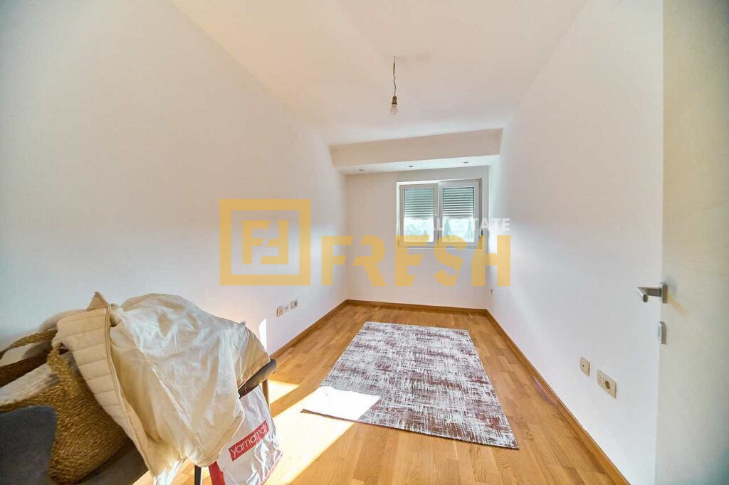 Sastoji se od komfornog dnevnog boravka, trpezarije, kuhinje, 2 spavaće sobe, velikog kupatila, toaleta, garderobera, hodnika i terase.