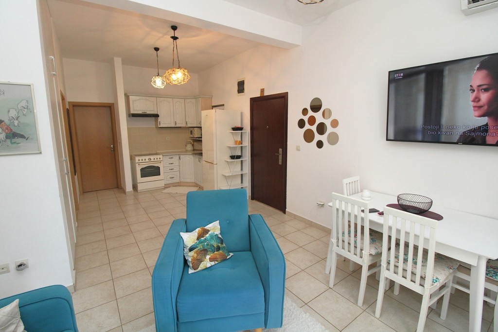 Stan je smješten u mirnom okruženju,ispod glavne magistrale u neposrednoj blizini mora