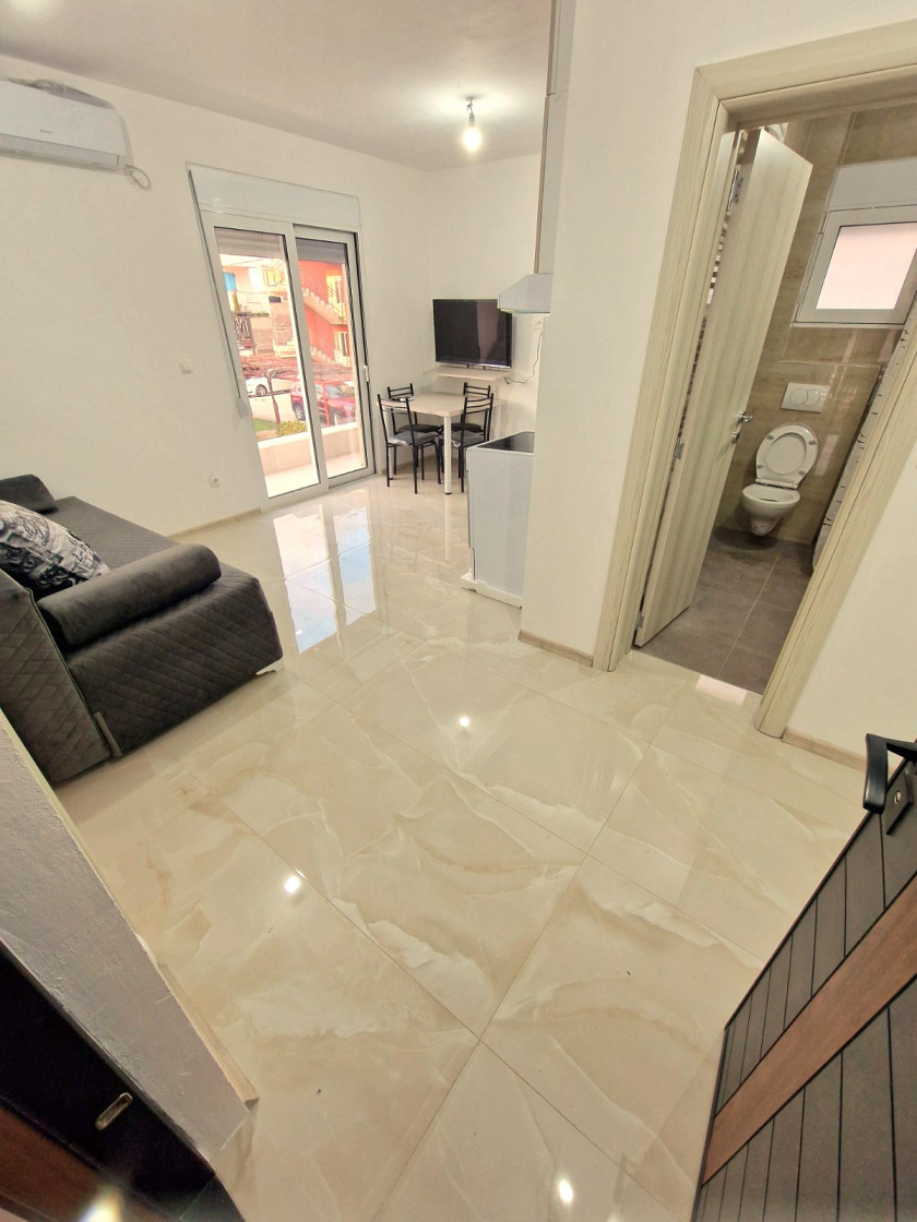 Opis: Izdaje se jednosoban stan površine 40m2. Sastoji se iz dnevne sobe sa kuhinjom i trpezarijom, spavace sobe, kupatila i terase. Nalazi se u Šusnju, odlična lokacija, u blizini škole, marketa. Udaljenost od mora iznosi 600 metara.