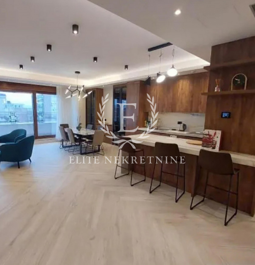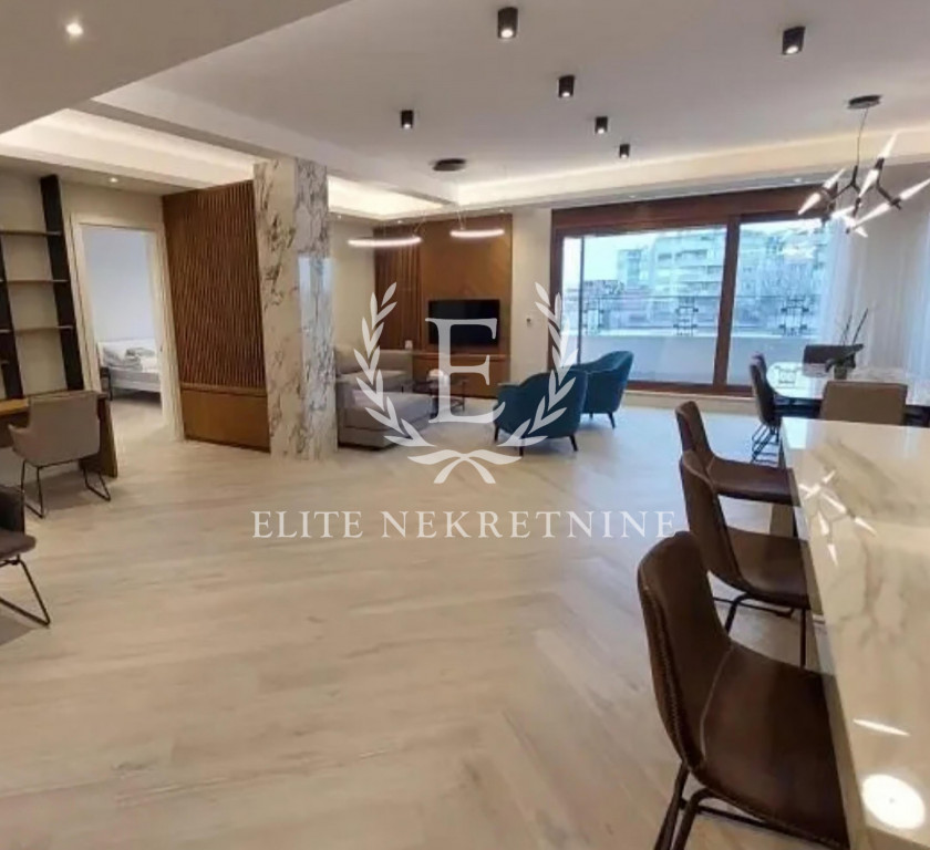 Raspored obuhvata tri spavaće sobe, uključujući master sobu sa sopstvenim kupatilom, dodatno kupatilo i odvojen gostinski toalet. Stan je vrhunski opremljen, sa podnim grejanjem i sistemom toplotne pumpe, što obezbeđuje visok energetski komfor i niske troškove.