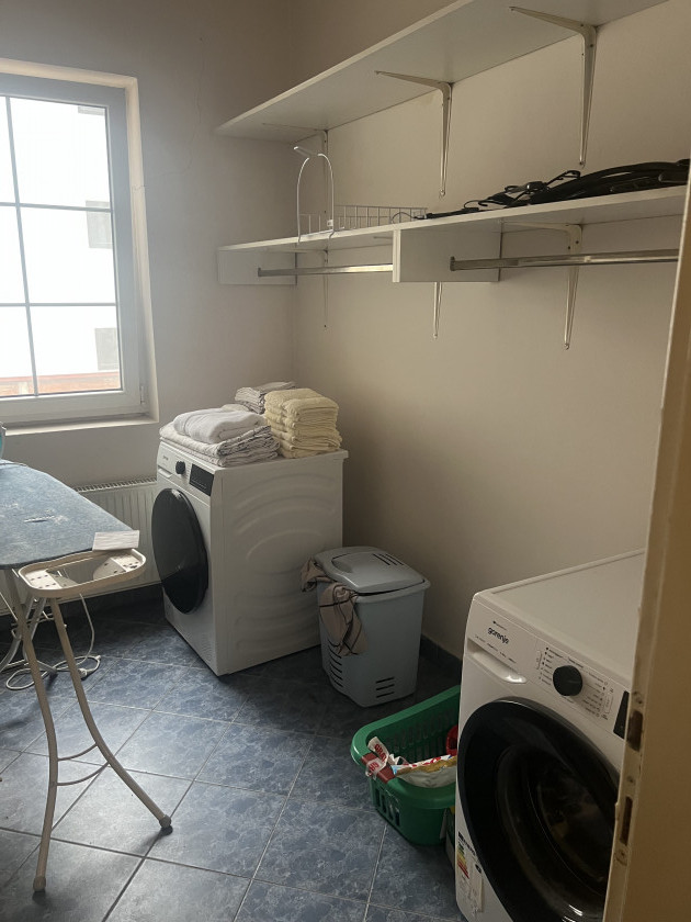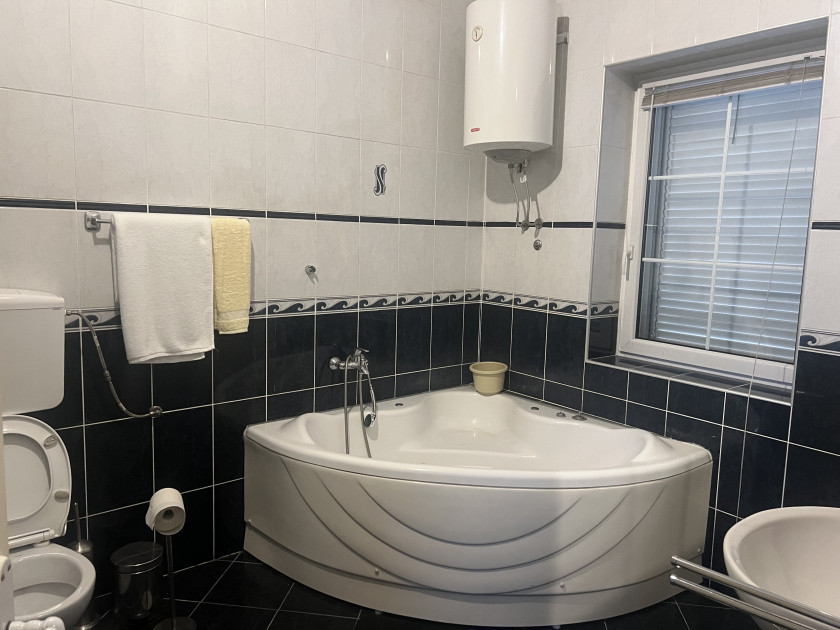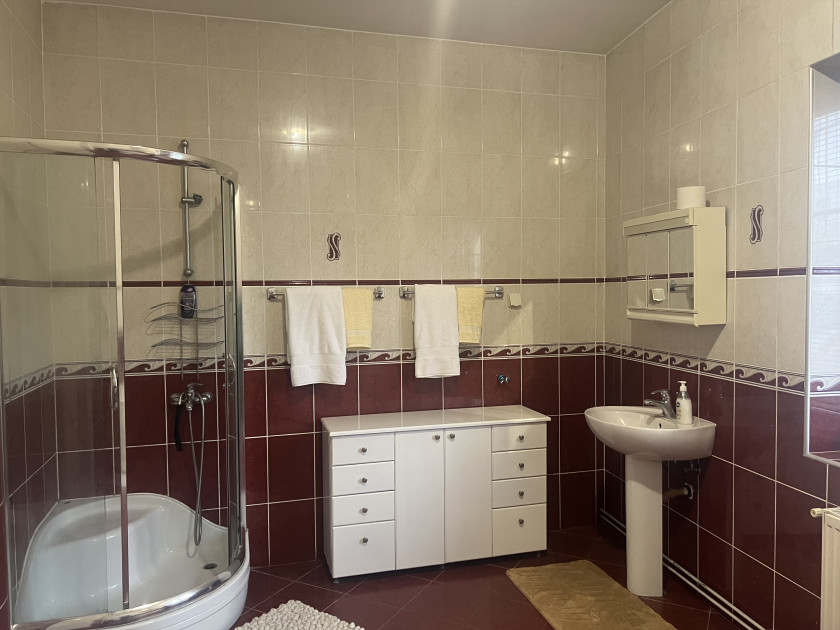 Stan ima velike tri spavaće sobe i svaka ima svoje kupatilo sa tuš kabinom i kadom! Veliki dnevni boravak sa ugradnom kuhinjom i velikom trepezarijom, takođe ima toalet kao i dve velike ostave i jedan vešeraj.