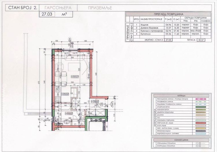 Prostorije; predsoblje, višenamenska soba sa kuhinjom, kupatilo, terasa.