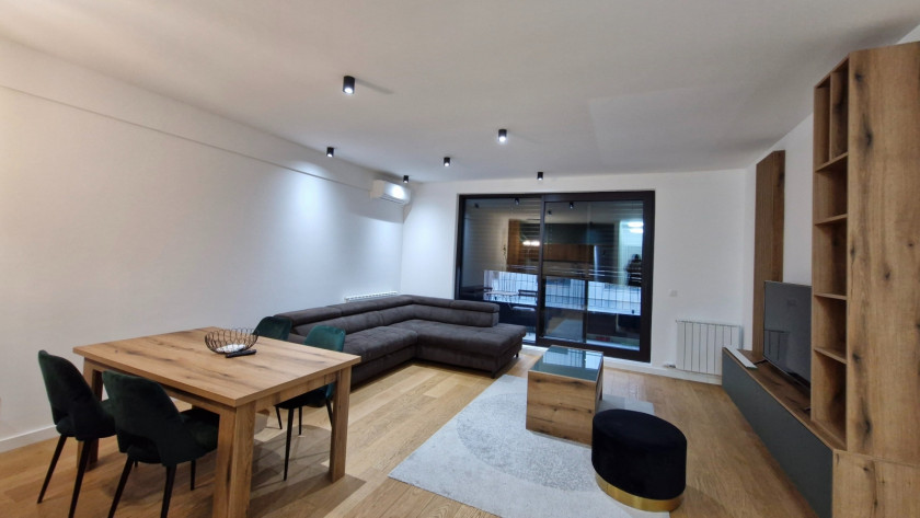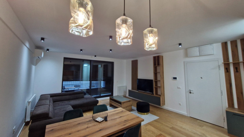 Opis: Nov trosoban stan u Naselju K District, nov namestaj I aparati, prostran i svetao dnevni boravak sa izlaskom na terasu, trpezarija, kihinja, 2 spavace sobe, kupatilo, toalet, garazno mesto uz doplatu od 100Eura.