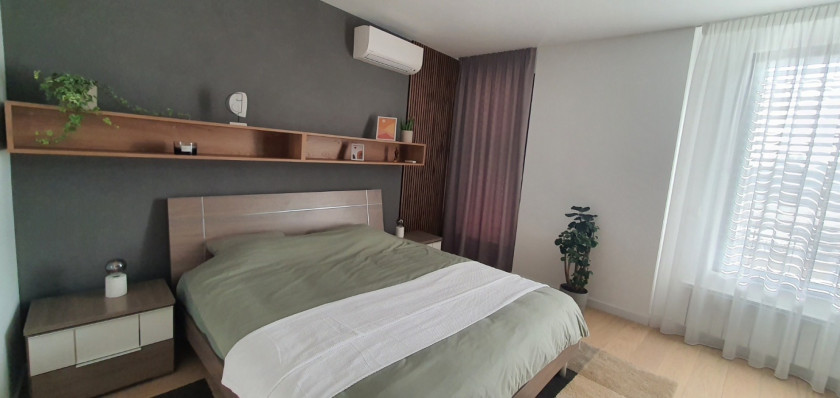 Odličan raspored, vrlo komforan, poseduje prostrani dnevni boravak, kuhinju šankom odvojenu, dve spavaće sobe, od kojih je jedna soba master sa sopstvenim kupatilom, dodatno kupatilo, toalet i prostranu terasu. Grejanje je po utrošku.