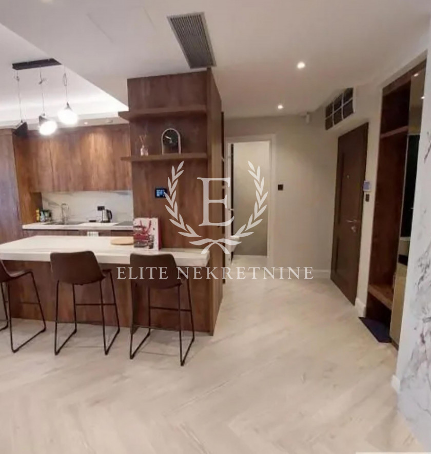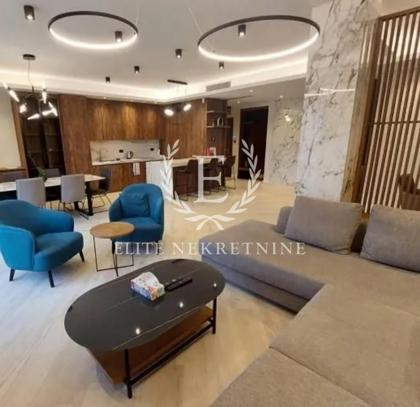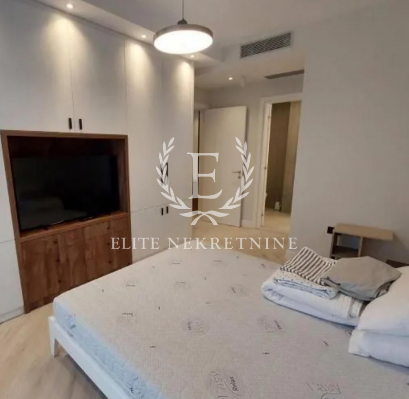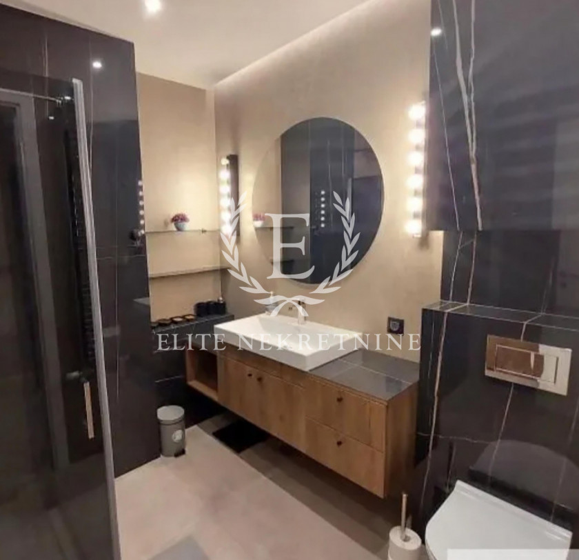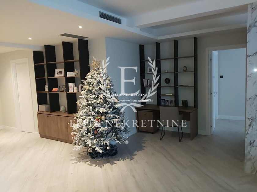 Raspored obuhvata tri spavaće sobe, uključujući master sobu sa sopstvenim kupatilom, dodatno kupatilo i odvojen gostinski toalet. Stan je vrhunski opremljen, sa podnim grejanjem i sistemom toplotne pumpe, što obezbeđuje visok energetski komfor i niske troškove.
