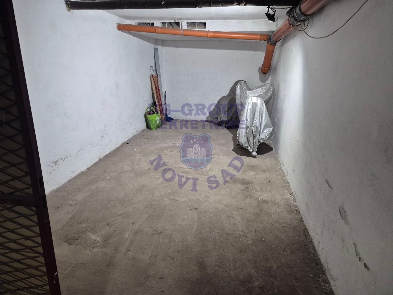 Opis: Garaza u suterenu, obicna vrata, ulaz kapija na daljinski, prva vrata levo kad se sidje.