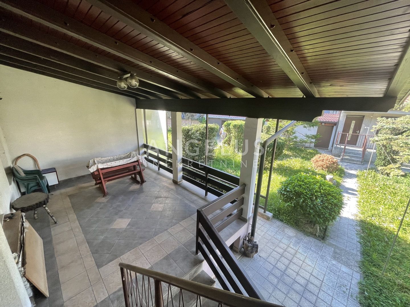 OPIS. Kuća se sastoji od dva odvojena stana, koja se mogu povezati te kuću renovirati kao obiteljsku. Prizemni stan se sastoji od dvije velike prostorije orjentirane prema ulici, te kuhinje, blagavonice, kupaone i ostave orjentirane prema dvorištu. Ispred je velika natkrivena terasa, vrt s kućom od 40tak m2 u kojoj je kuhinja, dnevni boravak, spavaća soba i vinski podrum, te ostava. Na gornjoj etaži nalazi se sličan stan kao u prizemlju. Ispred kuće su dva natkrivena parkirna mjesta. U cijenu kuće je uključen kompletan namještaj .