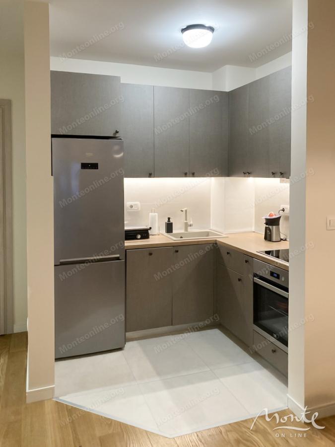 Stan se odlikuje visokokvalitetnom završnom obradom i prodaje se potpuno dovršen. Kuhinja i ugradbeni ormari su od DODING-a, kompanije poznate po visokokvalitetnim materijalima i izradi. Raspored uključuje svijetli dnevni boravak u kombinaciji s kuhinjom i trpezarijom, odvojenu spavaću sobu i moderno kupatilo.