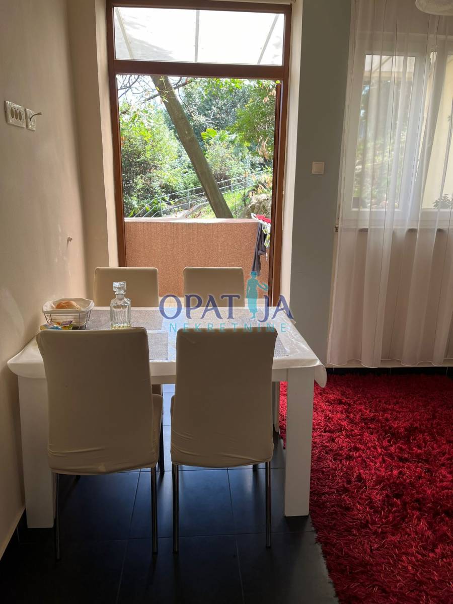 U srcu Lovrana nudimo izvrstan stan na atraktivnoj lokaciji unutar austrougarske vile, s garažom i parkirnim mjestom. Stan se sastoji od dnevnog boravka, spavaće sobe, kupaonice, ostave i kuhinje s izlazom na terasu. Nalazi se u visokom prizemlju. Stan je dobro održavan, dobro opremljen i namješten te se iznajmljuje u trenutnom stanju.