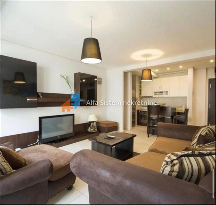 Sadrži kupatilo, kuhinju i ostavu, a opremljen je kompletnim nameštajem i tehnikom: internet, TV, klima, kuhinjski elementi, frižider, zamrzivač, šporet, rerna, ležaj, plakar i ugradni plakar. U cenu zakupa uključeno je i garažno mesto u sklopu zgrade.