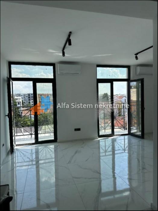 Opis: Potpuno nov i lux opremljen stan, odvojena soba, dnevni boravak sa prostorijom koja se moze pregraditi u jos jednu sobu, kuhinja, kupatilo.