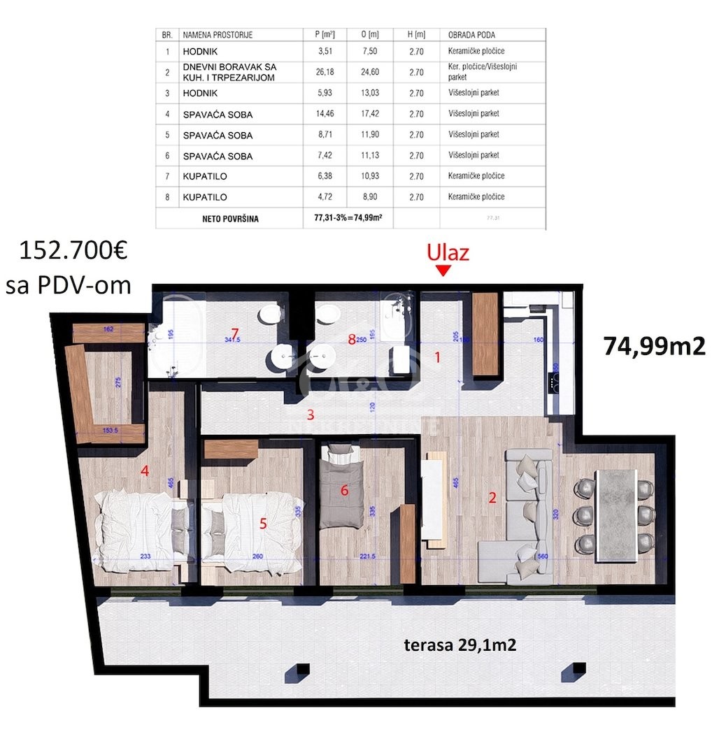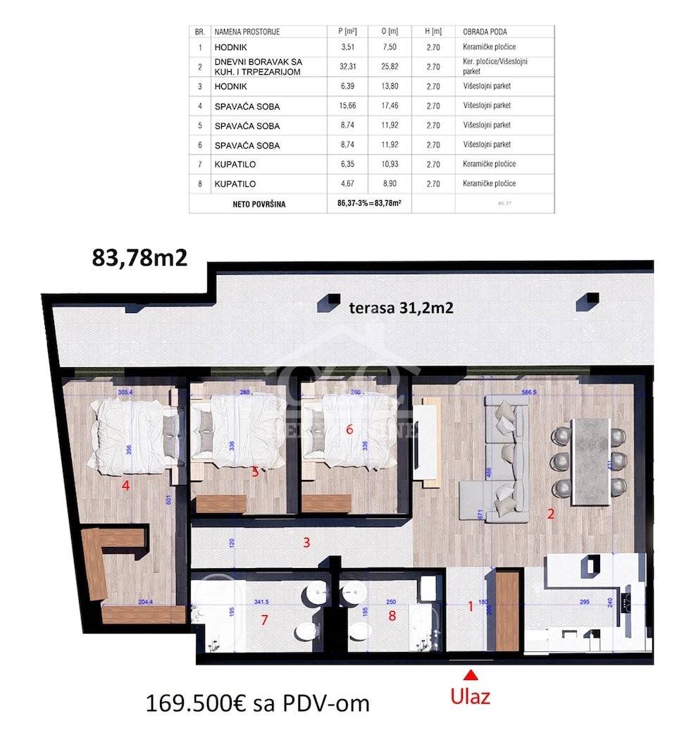 Opis: Stanovi u novogradnji na Aerodromu. Slobodni stanovi: jednoiposobni od 38,65m2, 48,11m2, 48,74m2, 51,14m2, 52,35m2 i troiposobni od 74,99m2, 83,78m2 i 86,35m2. Struktura jednoiposobnih: hodnik, kupatilo, dnevni boravak sa trpezarijom i kuhinjom, spavaćom sobom i terasom. Struktura troiposobnih: hodnik, dva kupatila, dnevni boravak sa trpezarijom i kuhinjom, tri spavaće sobe, terasa. Deo su modernog objekta koji se gradi po najvišim standardima: petokomorna PVC stolarija sa roletnama, parket višeslojni hrast, keramika.. Stanovi su pažljivo projektovani da spoje funkcionalnost i estetiku. Kupovinom stana u ovoj zgradi osiguravate udobnost, dugotrajnost i luksuz. Zgrada od tri sprata, sa liftom. Grejanje podno na gas. Nalazi se u mirnom delu grada Kragujevca, u blizini škola, vrtića, prodavnica. Završetak radova kraj 2027. Povraćaj PDV-a za kupce prvog stana. Postroji mogućnost kupovine garažnog mesta. Šifra oglasa: 1618-1
