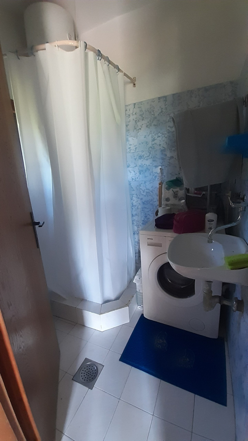 Prizemlje: dnevna soba sa trpezarijom i kuhinjom, kupatilo sa tuš kabinom i veš mašinom.