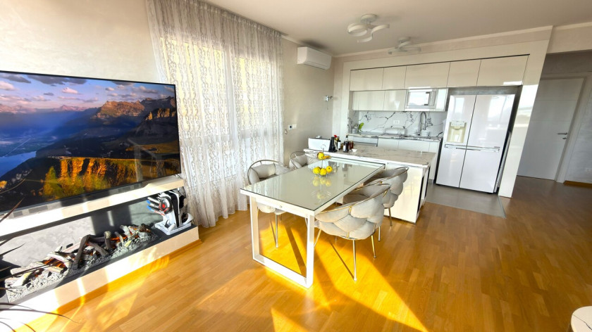 Penthouse je opremljen najkvalitetnijim materijalima, vrhunskim ormarićima, ugradbenim elementima, rasvjetom, vodovodom i multi-split sustavom klimatizacije.