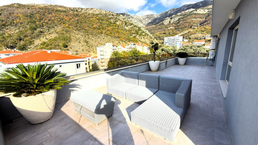 Opis: Penthouse sa garazom i krovnom terasom – Bečići, Budva