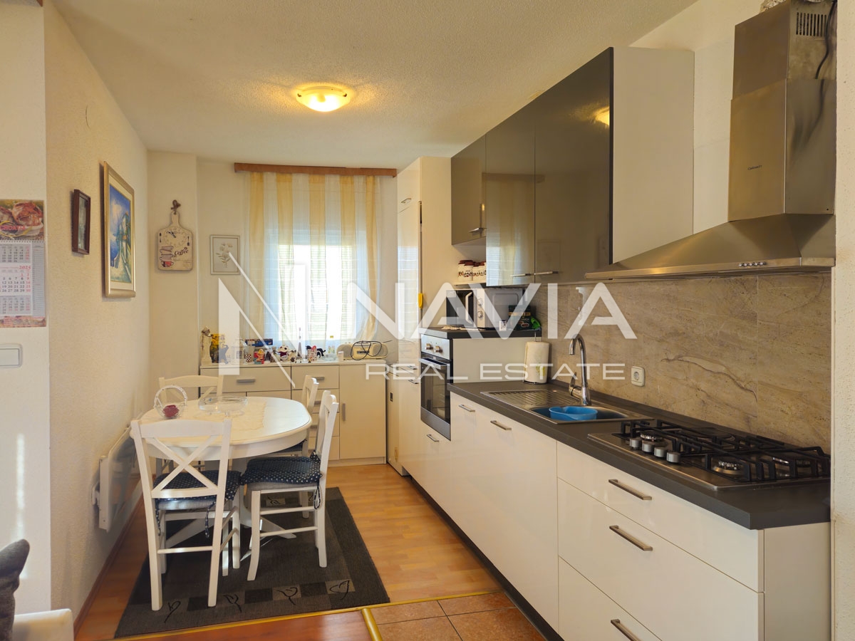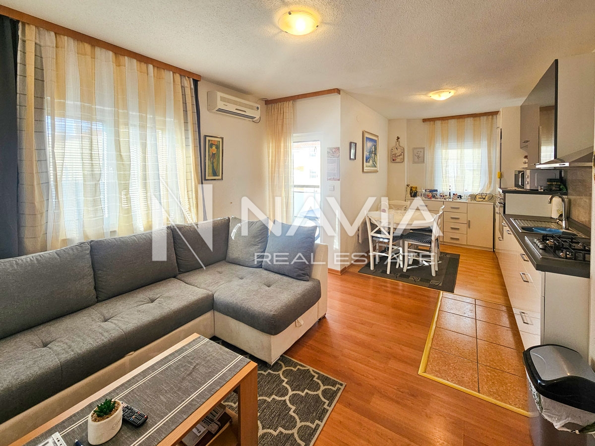 Stambena površina iznosi 37,35 m², a dodatnu vrijednost čine dva parkirna mjesta u ograđenom dvorištu, pa ukupna korisna površina iznosi 46,11 m². Stan je novo namješten u ljeto 2025. godine i spreman za useljenje bez ulaganja.