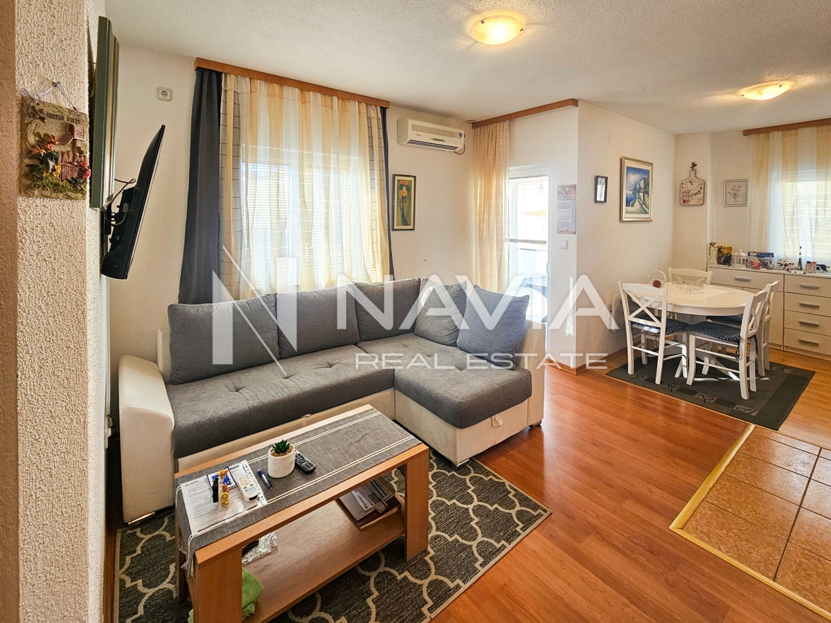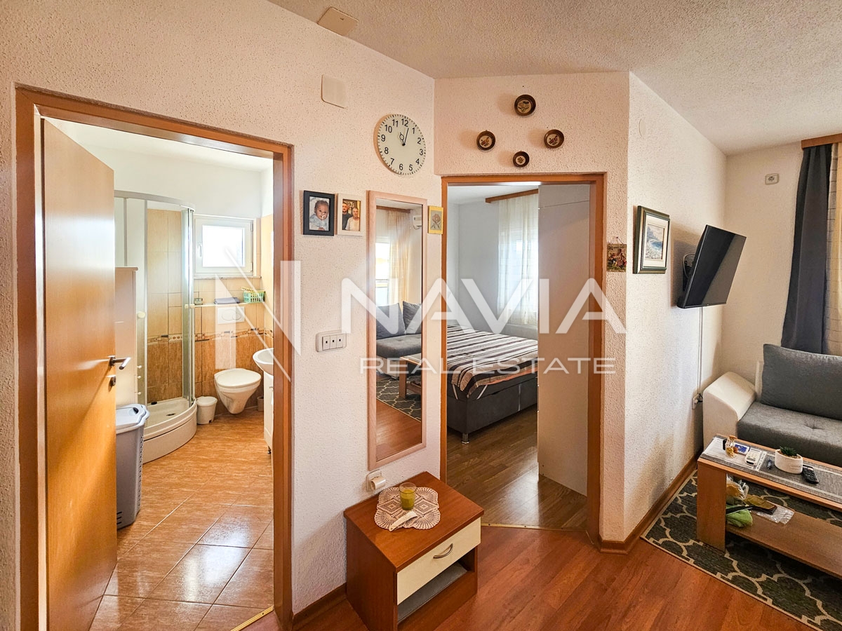 Opis: Na mirnoj lokaciji u Biogradu na Moru prodaje se jednosobni stan na prvom katu manje zgrade sa šest stanova. Stan je svijetao, uredan i vrlo funkcionalnog rasporeda.