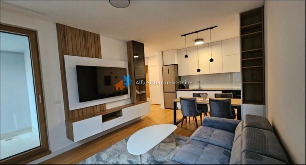 Raspored čine dnevni boravak sa kuhinjom i trpezarijom, spavaća soba, kupatilo i terasa. Opremljen je novim uređajima, centralnim grejanjem, optičkim internetom, kablovskom televizijom i sigurnosnim vratima. Zgrada poseduje video nadzor, obezbeđenje i odličnu toplotnu izolaciju.