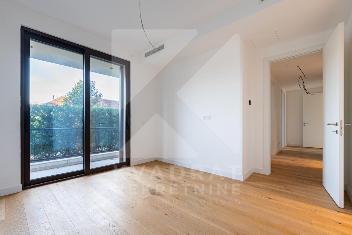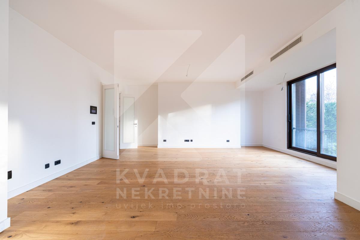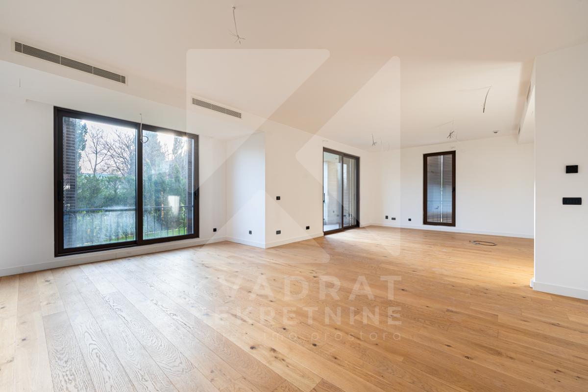 Opis: Na prodaju komforan trosoban stan, površine 137m2, sa pripadajućom istočno orijentisanom baštom od 50m2, smješten na prizemlju savremene stambene zgrade.