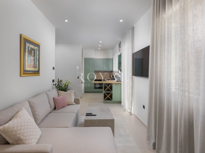 Iznajmljuje se potpuno novouređen i moderno opremljen jednosoban stan površine 40 m², smješten u samom centru Rijeke, svega cca 300 m od Korza.