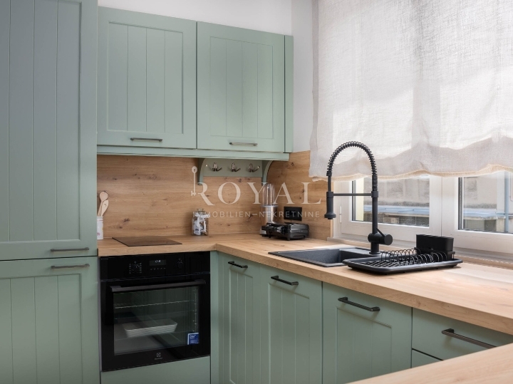 Stan je kompletno opremljen svim potrebnim aparatima, uređajima, posuđem i posteljinom. Opremljen je klimom i podnim grijanjem te je spreman za useljenje bez dodatnih ulaganja.