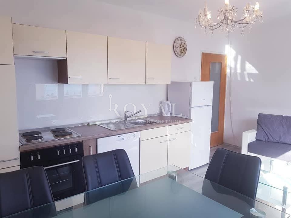 Stan je južno orijentiran, vrlo svijetao, s prekrasnim pogledom na more. Nalazi se na 6. katu uredne stambene zgrade s liftom. Ispred zgrade nalazi se veliki parking, a svaki kat ima vlastito spremište.