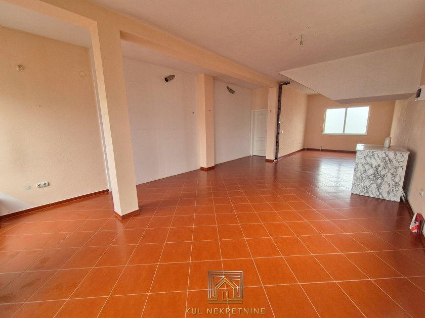 Opis: Poslovni prostor se nalazi u Dušanovu, uz banjalučku cestu, na izuzetno frekventnoj i vidljivoj lokaciji. Ukupna površina prostora iznosi 90m², a trenutno je rigips pregradama podijeljen na dva poslovna prostora površine 35m² i 55m², bez čvrstih prezida, svaki sa sopstvenim ulazom i sanitarnim čvorom. Postoji mogućnost ponovnog spajanja u jednu cjelinu ili pojedinačnog najma, u zavisnosti od potreba zakupca.