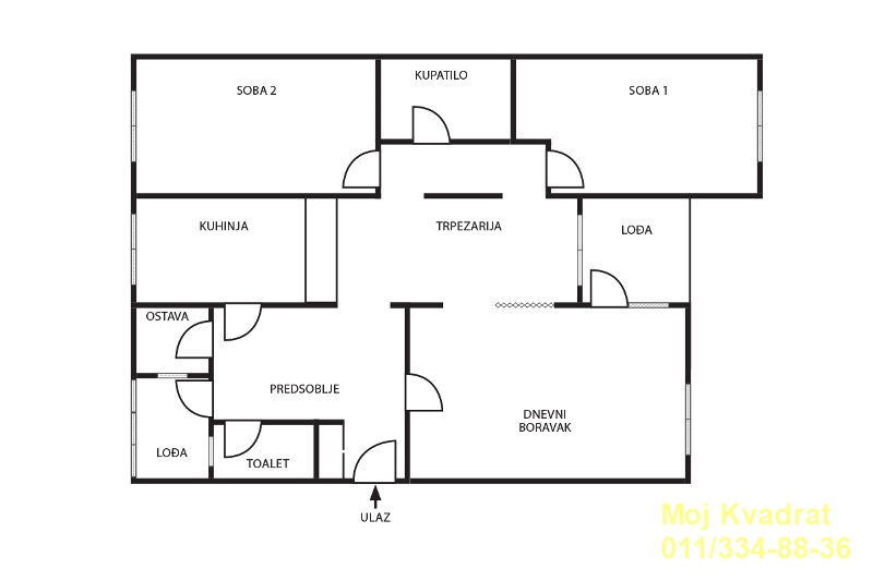 Sastoji se od velikog dnevnog boravka, kuhinje pored koje je ostava trpezarije, odvojenog spavaćeg bloka sa dve prostrane sobe, kupatila, gostinjskog toaleta i dve lođe od kojih je jedna pored kuhinje a druga pored trpezarije i dnevne sobe.