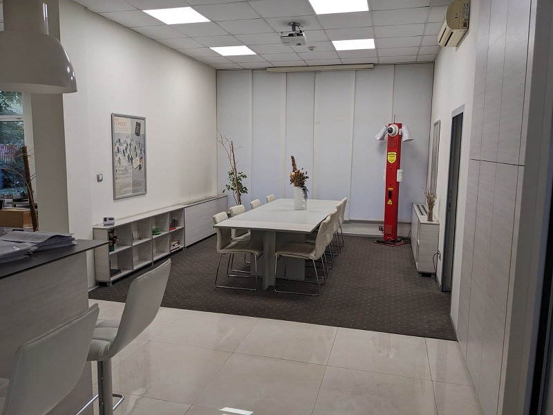 Sastoji se iz:prijemnog odeljenja sa klub garniturom,konferencijske sale,tri velike kancelarije+jedna manja,velike server sobe,kuhinje i dva toaleta.
