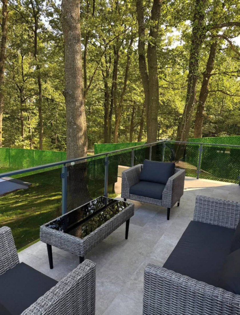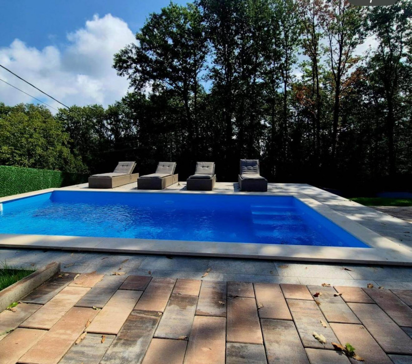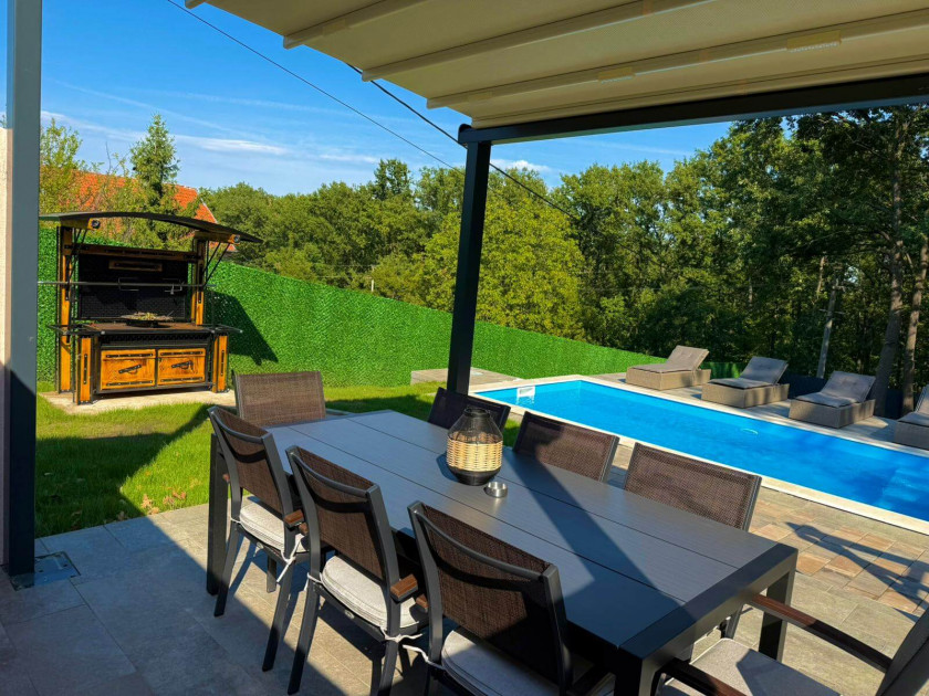 U dvorištu vas čeka bazen sa plažom i ležaljkama, veliko ograđeno dvorište pogodno za decu i kućne ljubimce, kao i letnjikovac sa osvetljenom, pokretnom pergolom i modernim etno roštiljem idealnim za pripremu hrane na otvorenom. Za ljubitelje sporta tu su teren za basket i sto za stoni tenis.