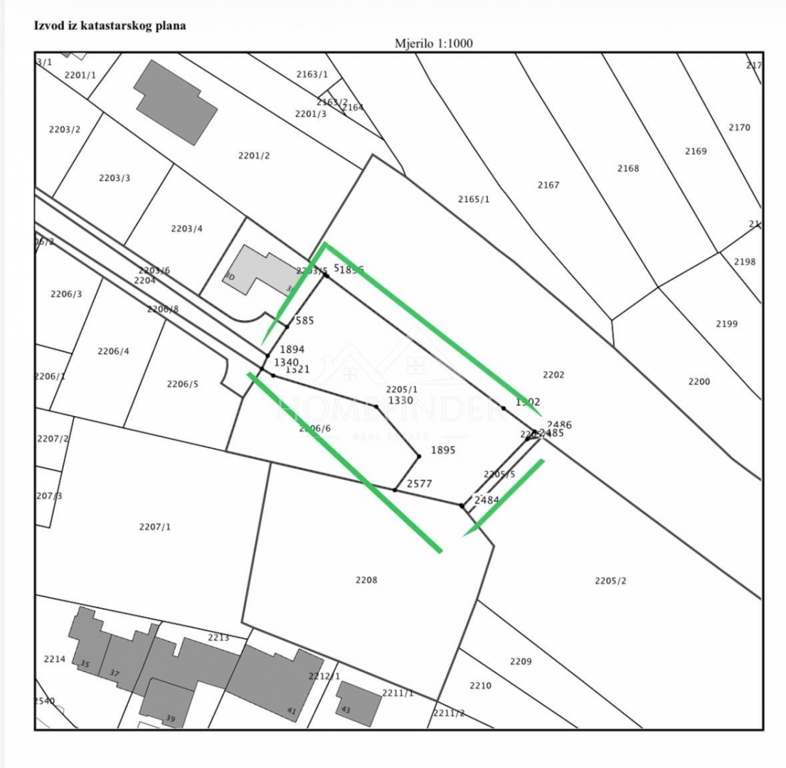 Cijela parcela nalazi se unutar građevinskog područja – zona S-ob (obiteljske stambene građevine). Zemljište je pozicionirano na kraju slijepe ulice, okruženo urednim obiteljskim kućama, te nudi otvoren pogled na prirodu i zelenilo, uz visoku razinu privatnosti i mira.