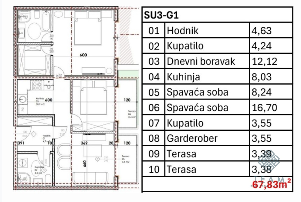 Opis: Prodaje se prostran dvosoban stan površine 67, 83 m² sa terasom sa pogledom na more u luksuznom kompleksu, Budva.