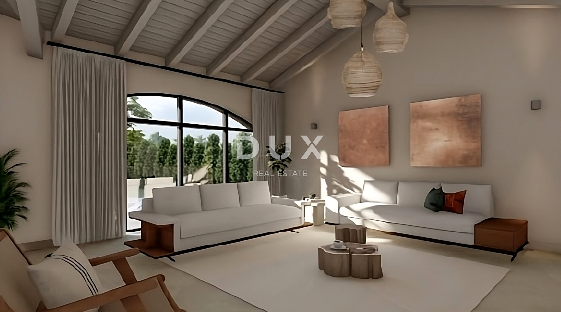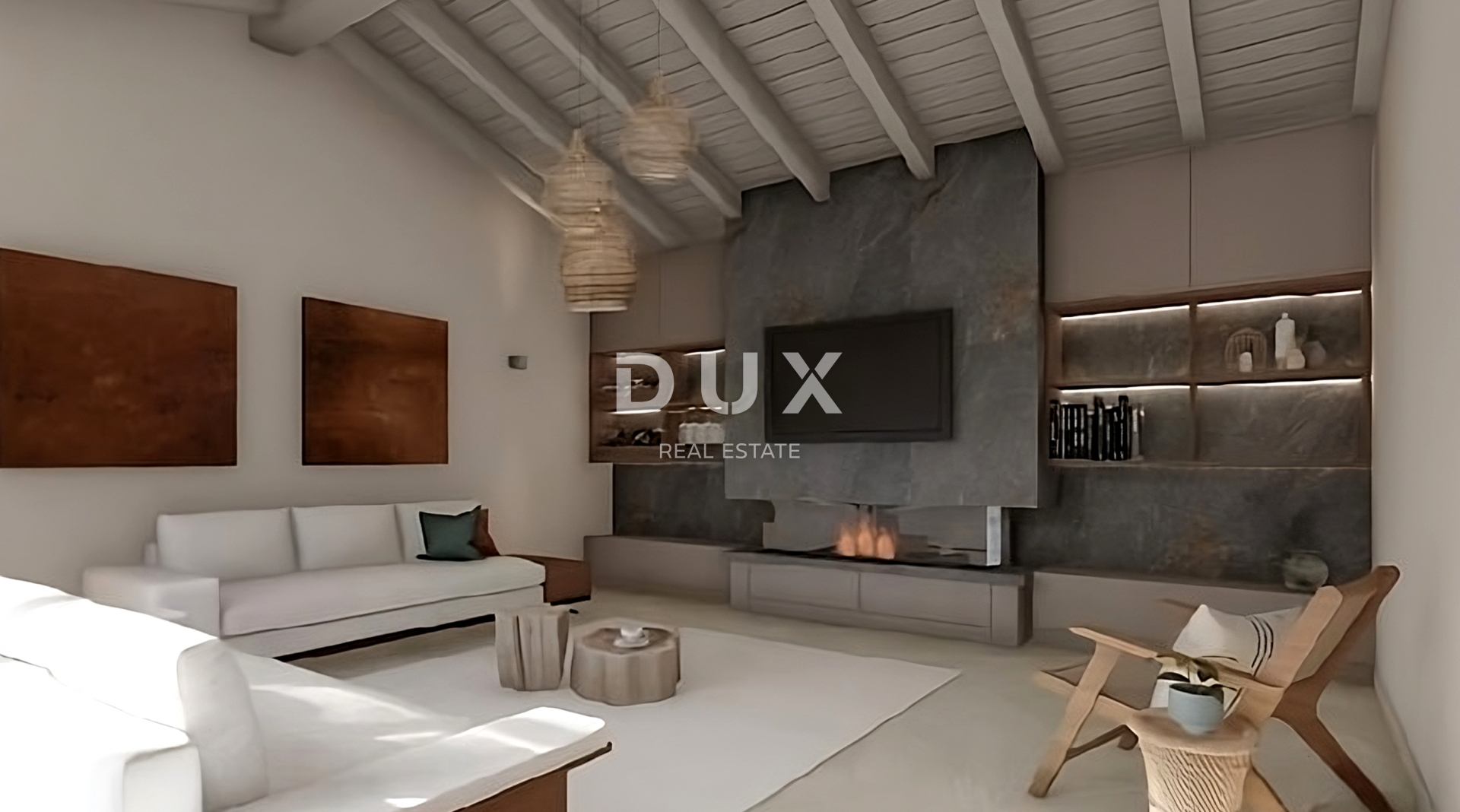 Kuća bezvremenskog dizajna se oblikovno i koloristički uklopa u naselje i krajolik a koncipirana je kao jedna stambena jedinica koja se proteže kroz dvije ukusno uređene i kvalitetno opremljene etaže.
