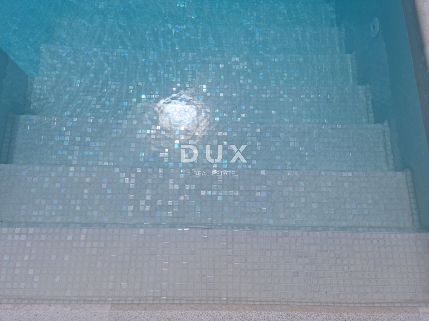 Vila je izgrađena u elegantnom vintage stilu, s više kosih krovova na različitim razinama, te se prostire na velikoj i pažljivo uređenoj okućnici površine 2.273 m2, omeđenoj suhozidom i okruženoj moćnim hrastovima. Ukupna površina kuće iznosi 310 m2, od čega je 280 m2 neto stambenog prostora bez terasa, raspoređenog na suteren, prizemlje i kat.